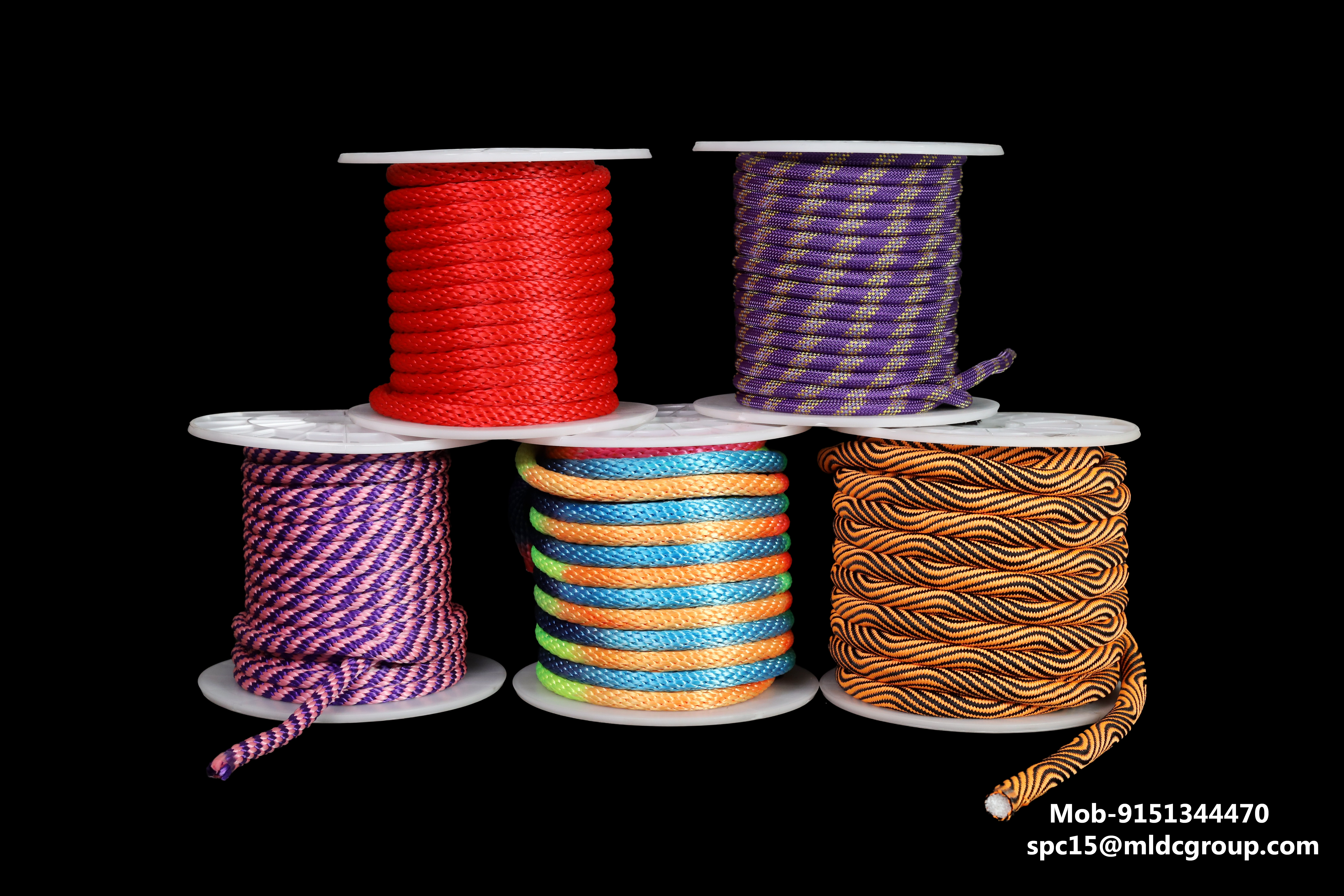 We pride ourselves on our diverse range of products, constant research and development, and innovation. We work with both natural and synthetic fibres. Our natural fibres include Cotton, jute and flax. we use semi-synthetic fibres like viscose or rayon and we work with synthetic fibres like nylon, polyester, pp and even specialised fibres like para aramid, meta aramid, and UHMPWE (ultra high molecular weight polyethylene) We manufacture ropes, elastics, cords, belts, webbings, tapes, specialty sewing threads, and shoelaces to name a few. Our products come in braided, twisted, woven and knitted categories. With ropes ranging from 0.5mm to 25mm diameter, and tapes and webbings from 0.3mm to 5 mm in thickness, and 1mm to 100mm in width. With our state-of-the-art machinery and our in-house dyeing unit—you name your requirement in this field, and we can make it. We supply by-products to every sector from shoelace to space. For product enquiries, please call or write to us on the number or email mentioned on the product images.